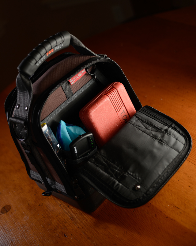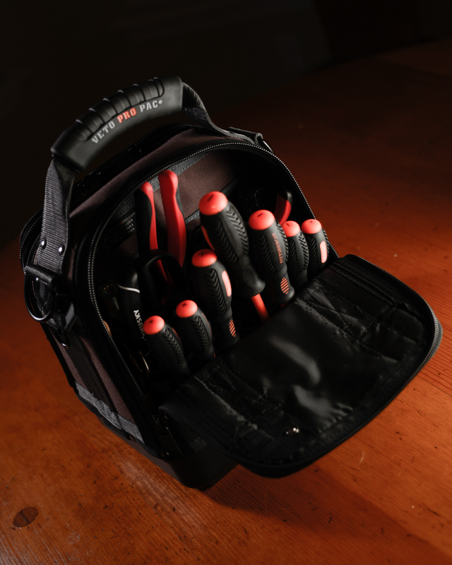 My previous bag was a Harbor Freight 12-inch tool bag. I bought it because it was cheap. I regretted that decision about three months into owning it. Keeping it closed was an effort in frustration. Either I could pack all the tools I need and not be able to close it or I could jam shit in it with the hopes that what I needed was right on top. More often than not, I had to dump the bag to find the right screwdriver or set of earplugs.A few months ago, I ran across Veto Pro Pac. These guys design bags for various trade industries (HVAC, plumbing, carpentry). Now, trades aren’t necessarily forgiving when it comes to their tool kits. This stuff gets dropped. It gets hung up in odd places, filled with heavy tools, stretching the stitching to its limits. It gets dragged through dirt and mud. Basically, some of the worst conditions you could expect.